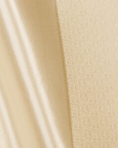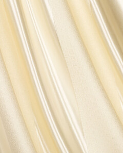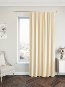 Портьера выполнена из жаккардовой ткани светло-бежевого цвета с текстурой чередующихся полос. На шторной ленте. Жаккард очень практичный материал, неприхотливый в уходе. Придаст комнате легкость и стильность.